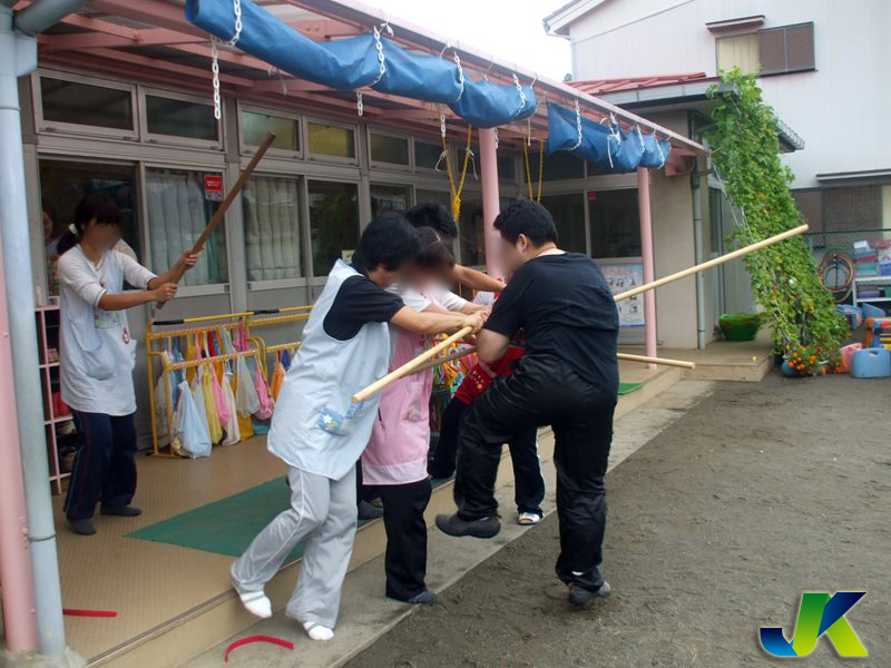不審者に園児を触らせないことを最重要目的としています。職員が内容を理解したのち園児も参加して訓練実施を行います。